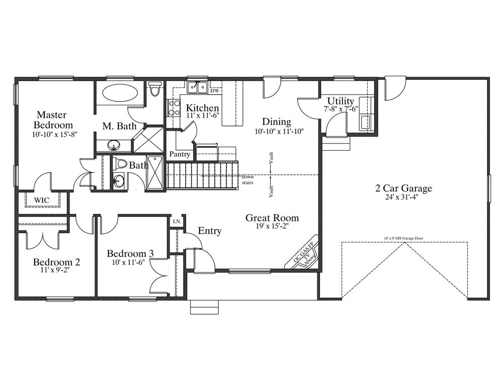 Single Story House Plan with Basement – 1398 Square Feet on Main Floor --- Great House Plan boasting nearly 2800 Sq. Ft. with Five (5) Bedrooms and Three (3) Bathrooms. Plan includes a 2 Car Garage and a Pantry, Mud Room, and Fireplace in the Main Floor. Plan may be Designed to fit your needs - Call today!