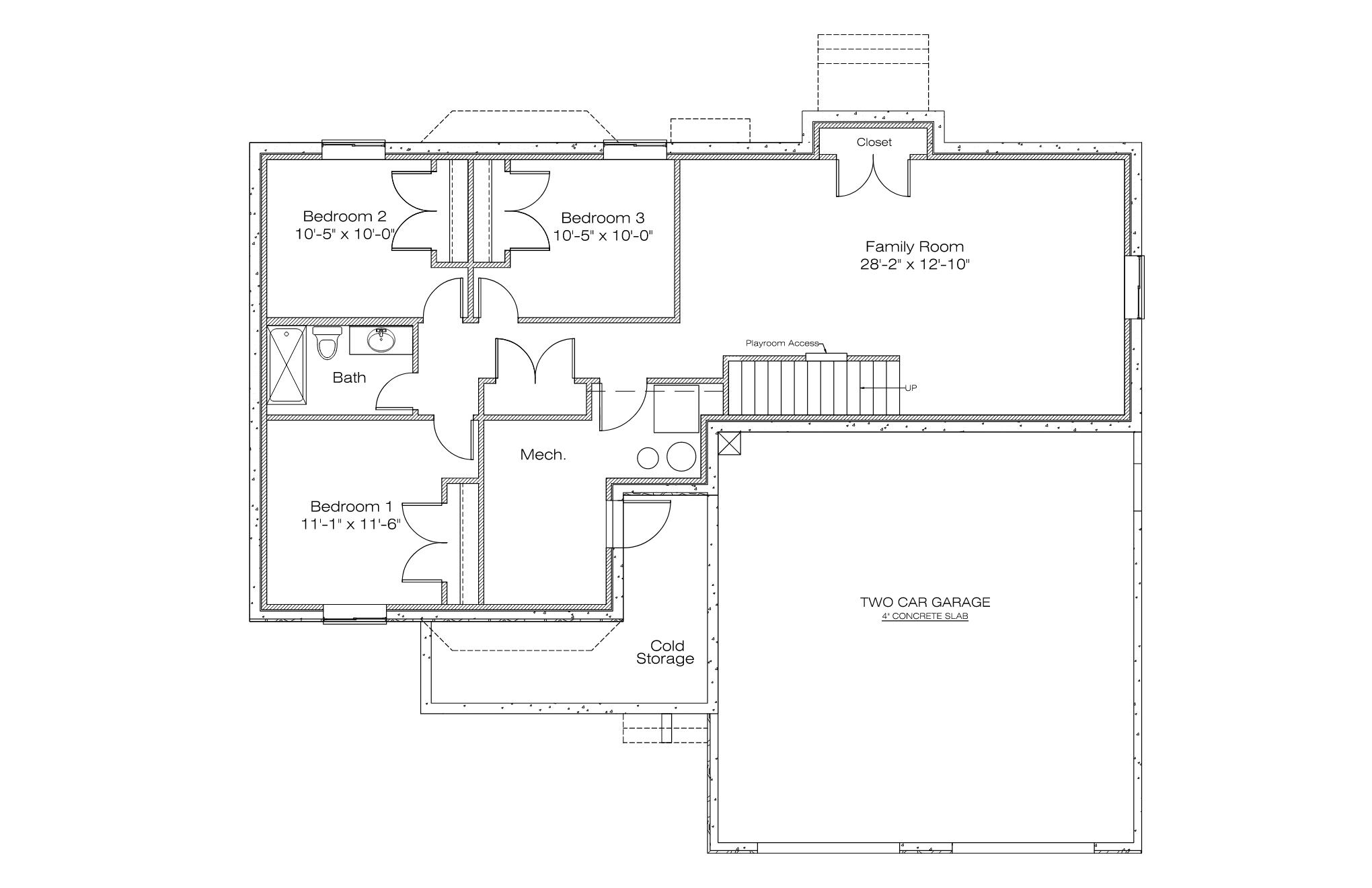 Single Story House Plan with Basement – 1407 Square Feet on the Main Floor --- GREAT SINGLE STORY Family House Plan boasting over 2700 Sq. Ft. with finished. Find Six (6) Bedrooms and Three (3) Bathrooms, overall. Main Floor includes a Covered Front Porch, Mud Room, Gas Fireplace, and a Pantry on the Main Floor. Find Three (3) bedrooms and Cold Storage in the Basement. Plan may be Altered/Designed to fit YOUR needs - Call today!