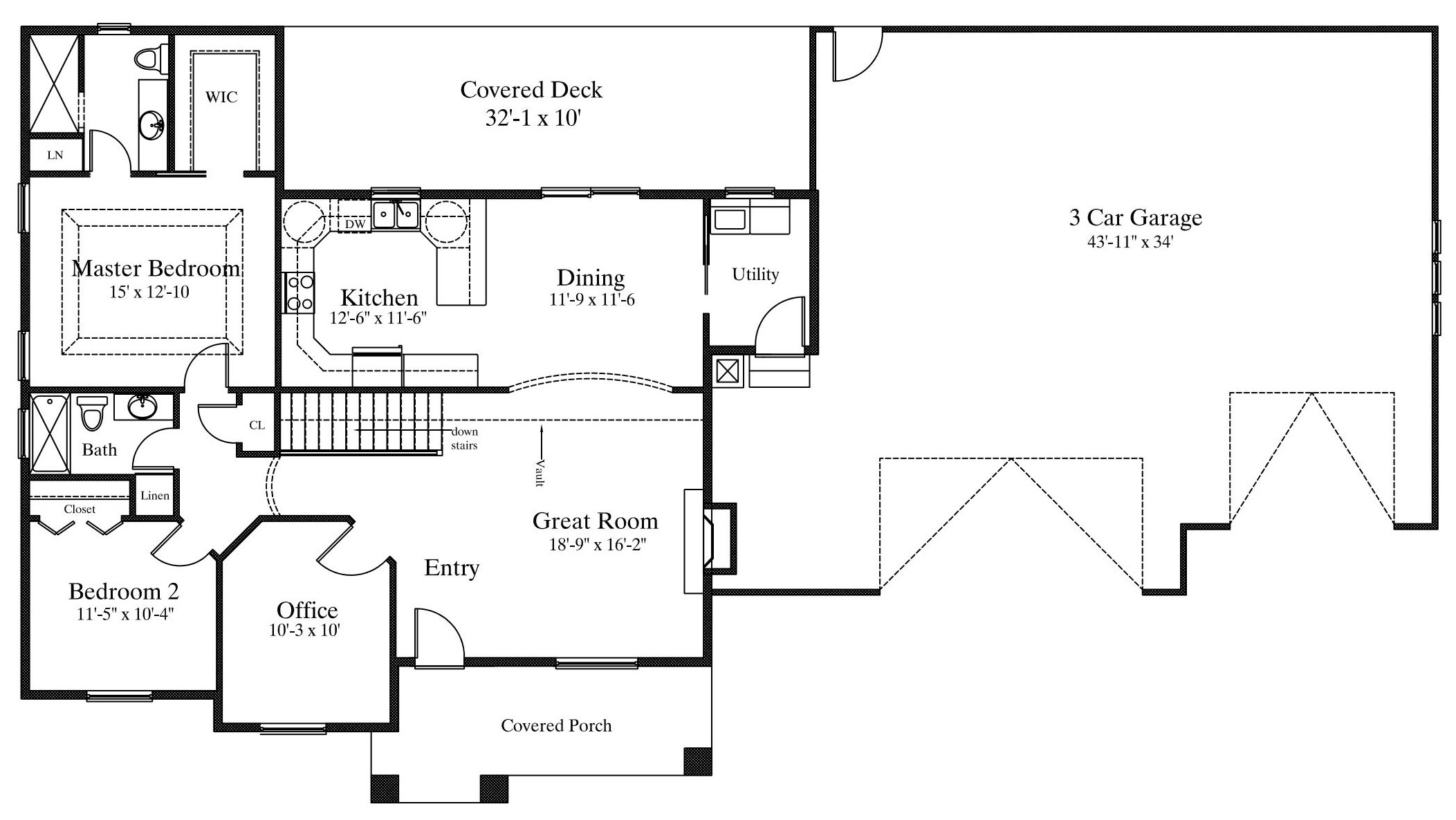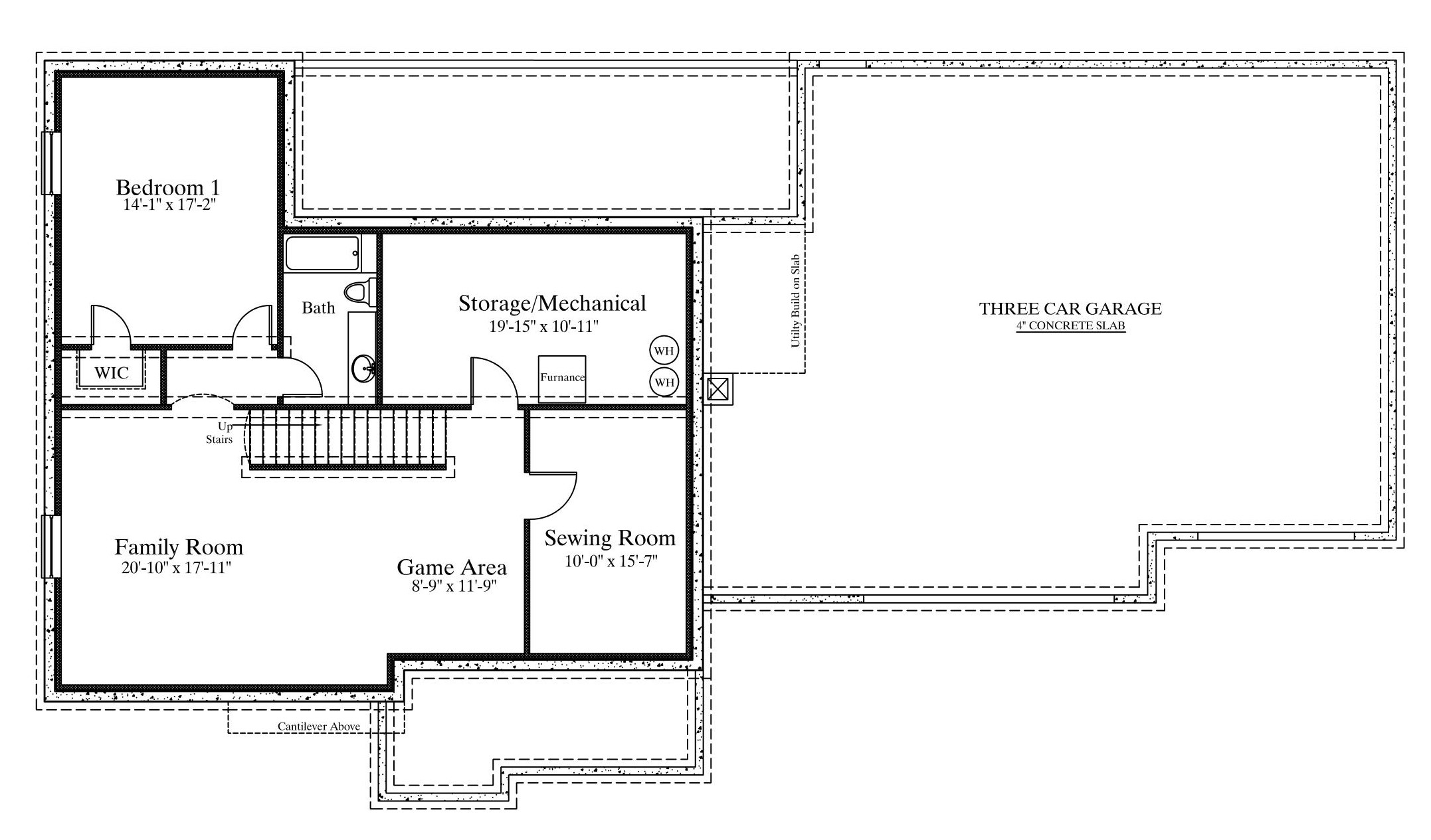 Single Story House Plan with Basement – 1513 Square Feet on Main Floor --- Lovely Single Story Family House Plan with nearly 3000 Sq. Ft. Plan includes Three (3) Bedrooms and Three (3) Bathrooms. Find an Office, Fireplace, Mud Room, Covered Porch and Covered Deck. Basement includes Family Room, Game Room, and a Sewing Room.