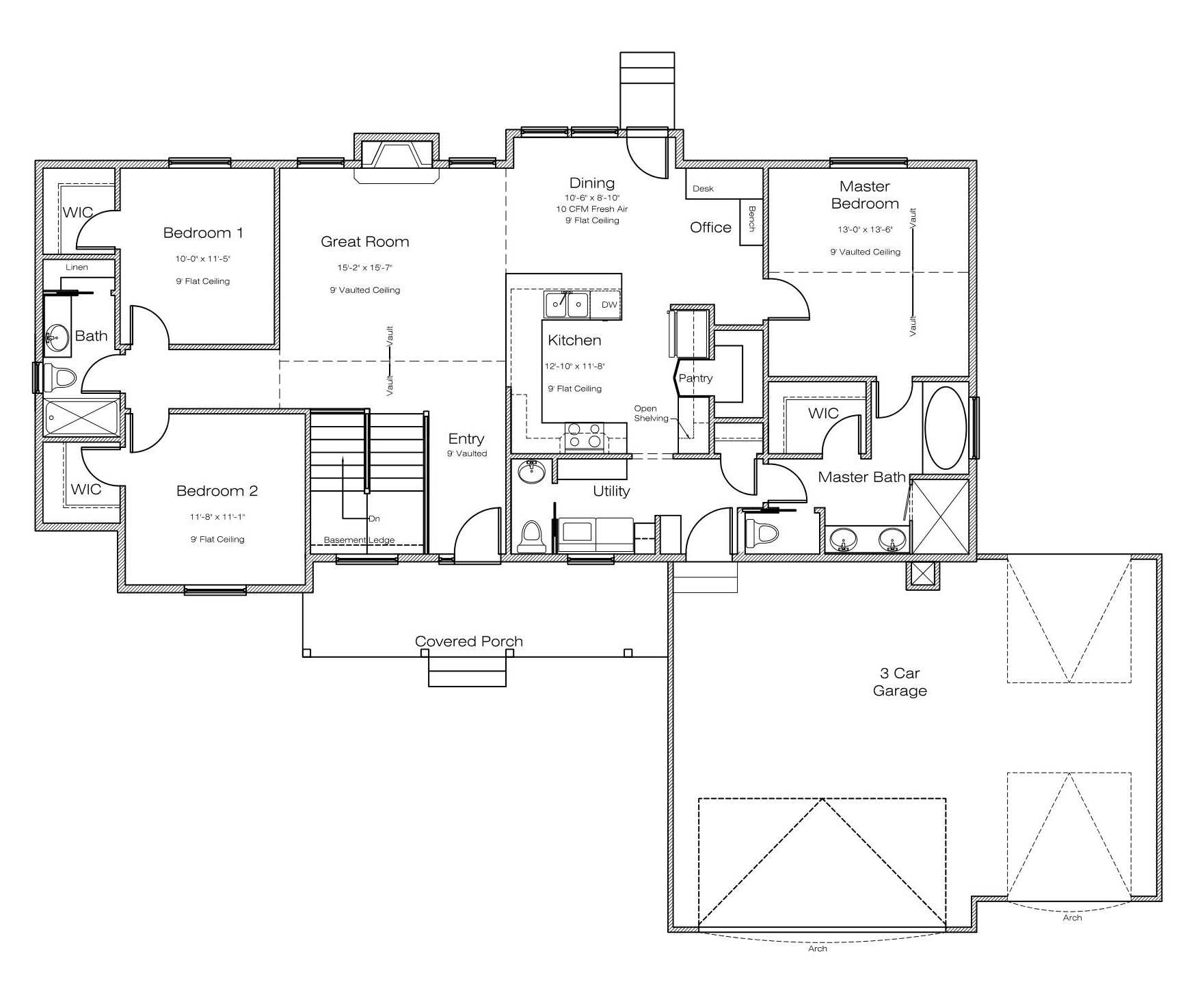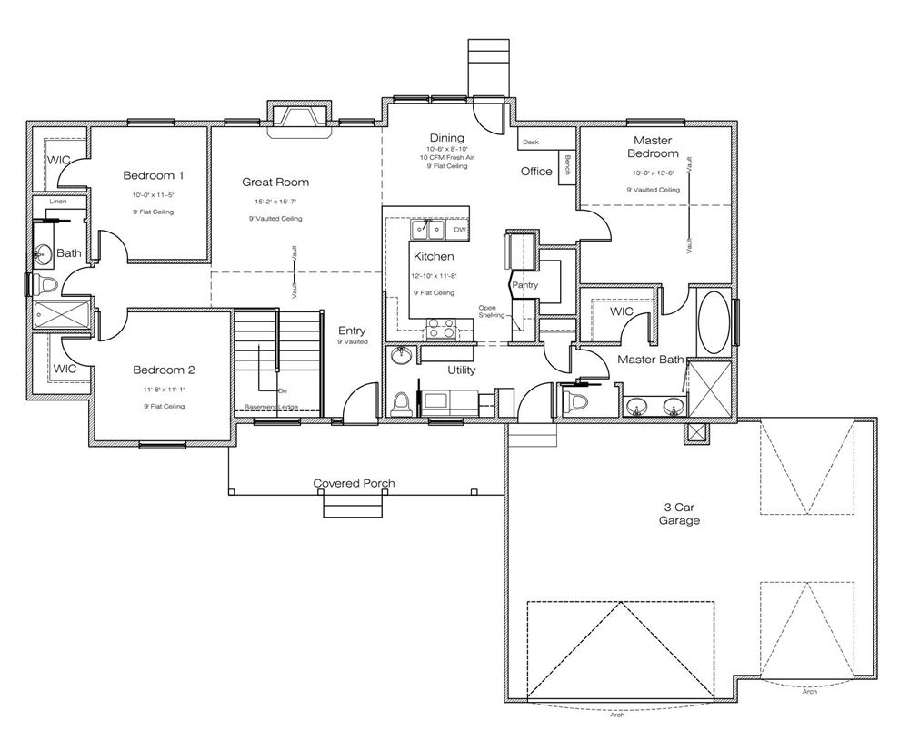 Single Story House Plan with Basement – 1624 Square Feet on the Main Floor --- Enjoy over 3200 Sq. Ft. with this well-designed house plan! Plan includes 6 Bedrooms, 3.5 Bathrooms, and a 3 Car Garage. Find a Covered Front Porch, Secluded Master Suite, and Mud/Utility Room on the Main Floor. Basement area includes 3 Bedrooms, Cold Storage, and a nice Play Area for kids. Plan may be Altered/Designed to fit your needs - Call today!