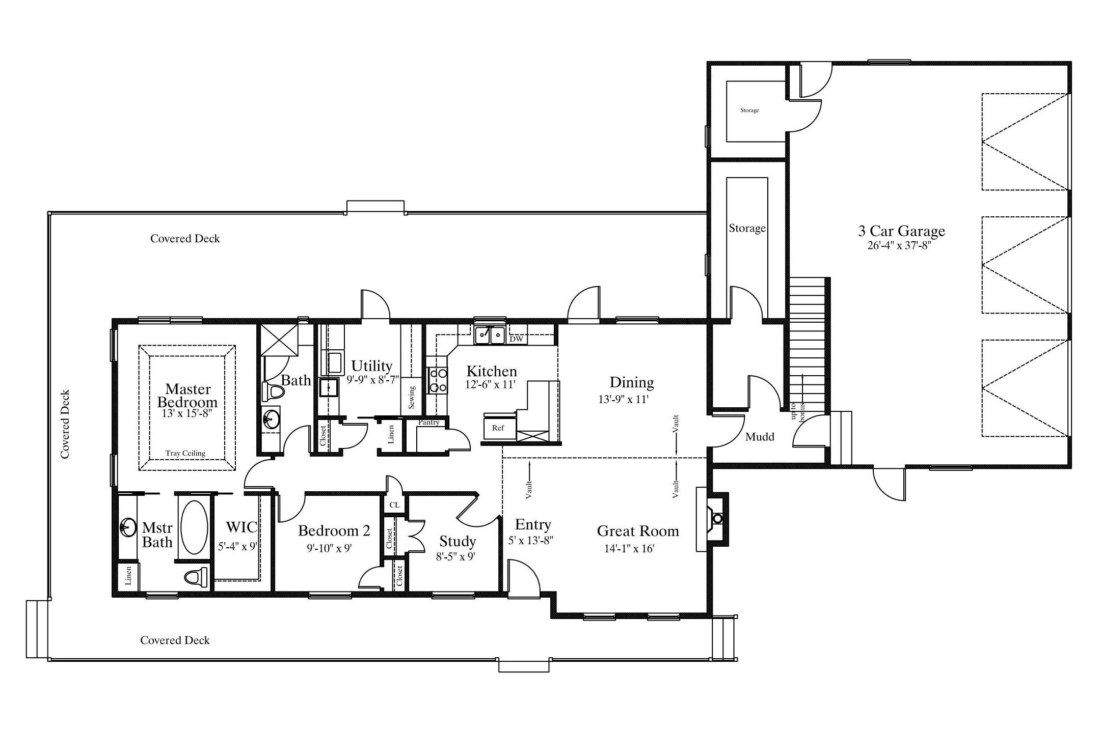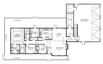 Single Story House Plan with Crawl Space – 1647 Square Feet on Main Floor --- Beautiful Single Story House Plan with 1647 Sq. Ft. on the Main Floor. Also, find Mud Room, Bonus Room, Covered Deck, Covered WRAP-AROUND PORCH, Fireplace, Study, and 3 Car Garage. Basement plan can be designed upon request.