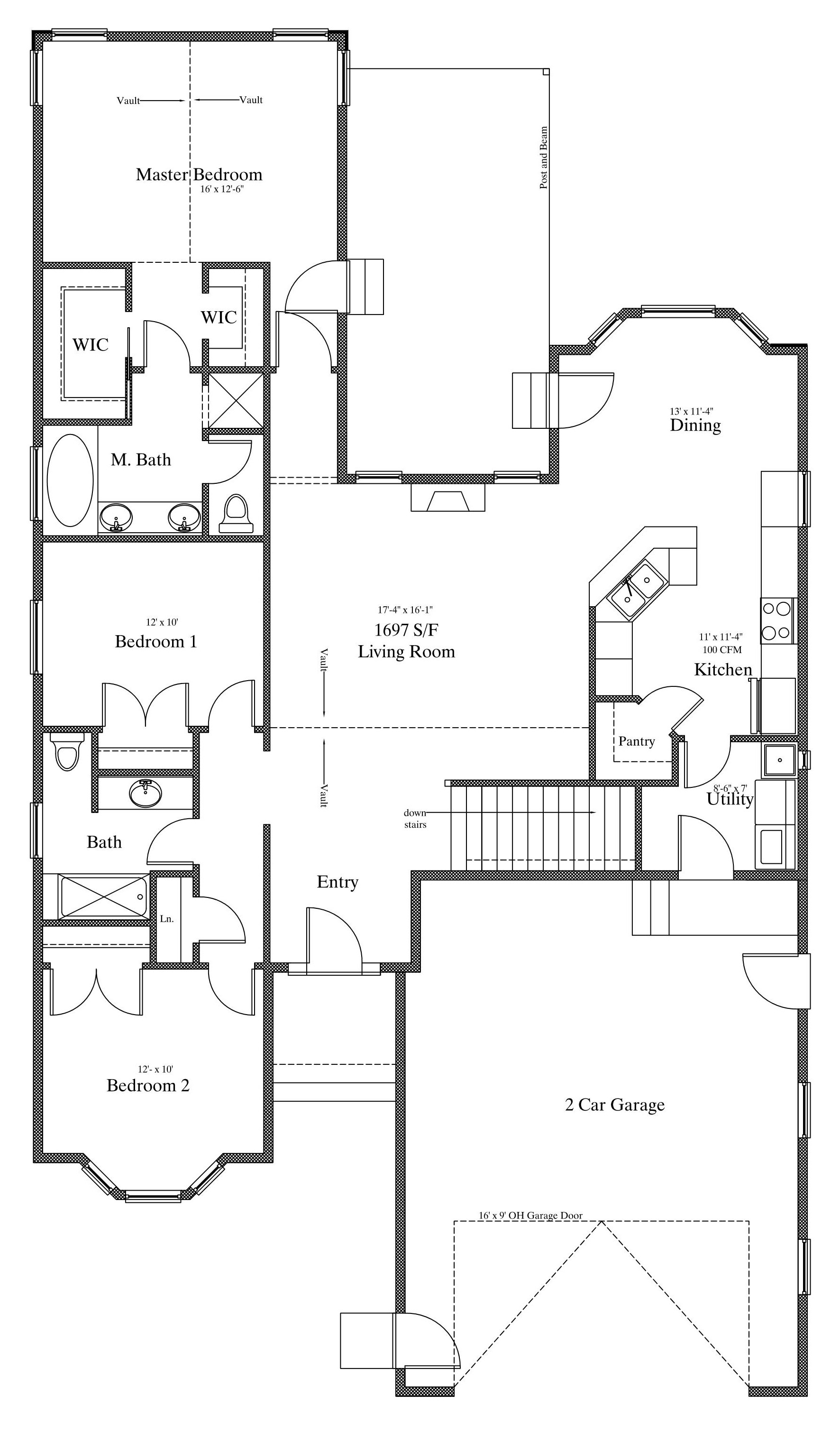 Single Story House Plan with Basement – 1697 Square Feet on Main Floor --- Floor Plan is UNIQUE and PACKED with features. Find 5 Bedrooms, 3 Bathrooms, and a 2 Car Garage that can be made larger if desired. Enjoy a Mud Room, Pantry, Wet Bar, Play Room UNDER the stairs, and an Excersise Room. Plan may be altered/designed to fit your needs - Call today!