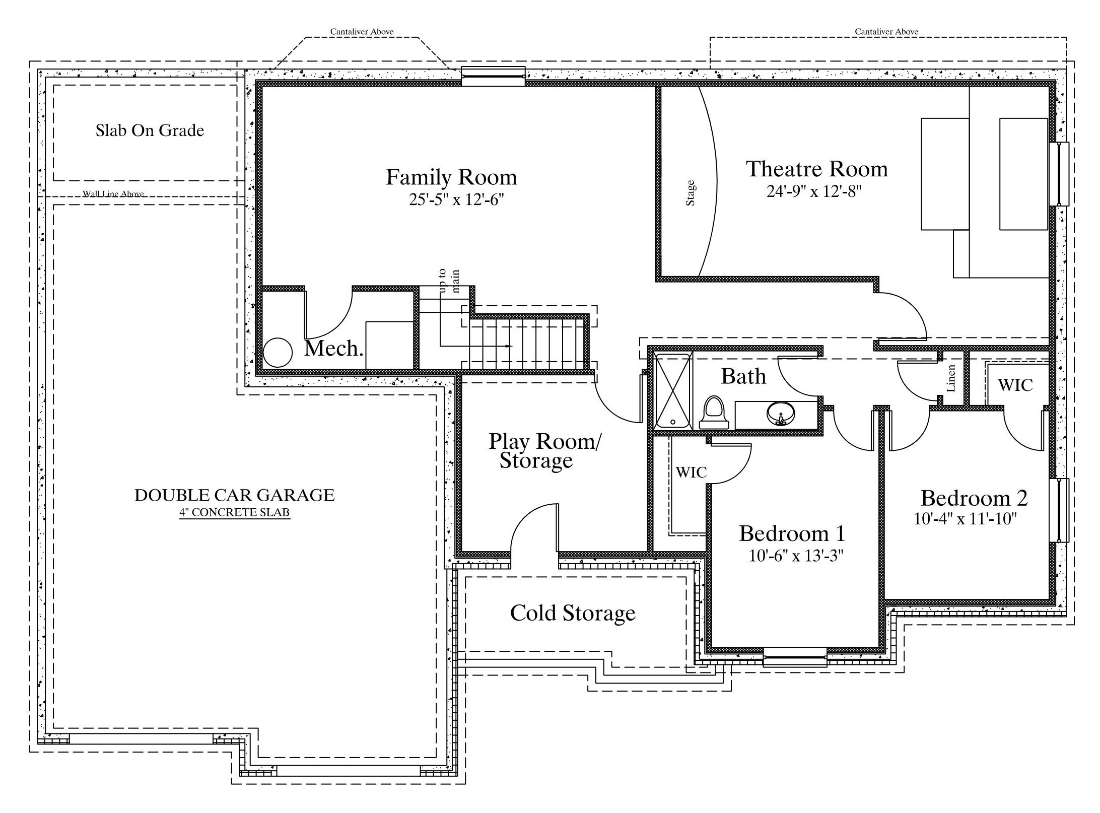 Single Story House Plan with Basement – 1736 Square Feet on Main Floor --- Beautiful Single Story Family House Plan boasting over 3400 Sq. Ft. when finished. Plan includes Five (5) Bedrooms, Three (3) Bathrooms, and a 2 Car Garage. Find a Living Room, Covered Porch, Mud Room, and Fireplace on the Main Floor. Basement includes Theater Room and Cold Storage. Plan may be Designed to fit your needs - Call today!