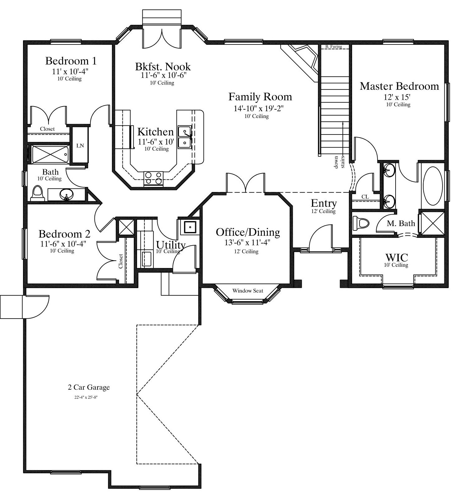 Single Story House Plan with Basement – 1745 Square Feet on Main Floor --- Excellent Single Story Family House Plan providing over 3400 Sq. Ft. Plan includes Six (6) Bedrooms, Three (3) Bathrooms, and a 2 Car Garage. Find a Secluded Master Suite, Mud Room, Office/Den, and Fireplace on the Main floor. Basement very roomy with Three (3) Bedrooms, Storage Room, and large Family Room. Plan may be Designed to fit your needs - Call today!