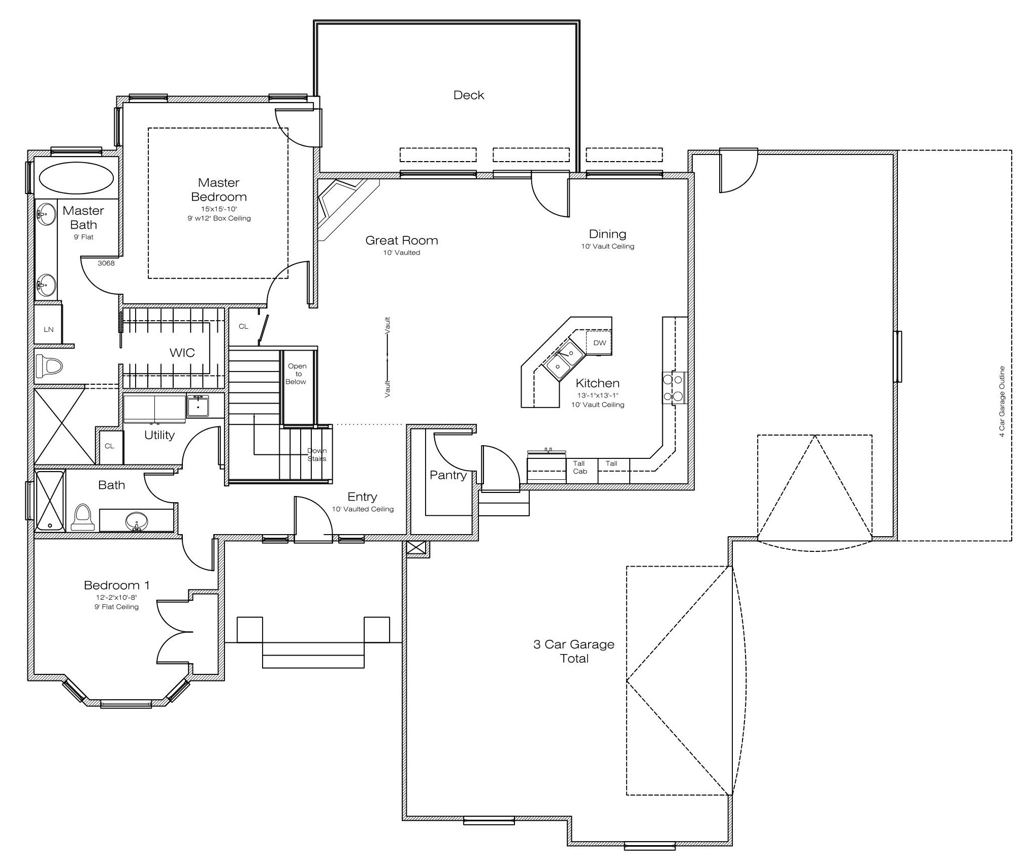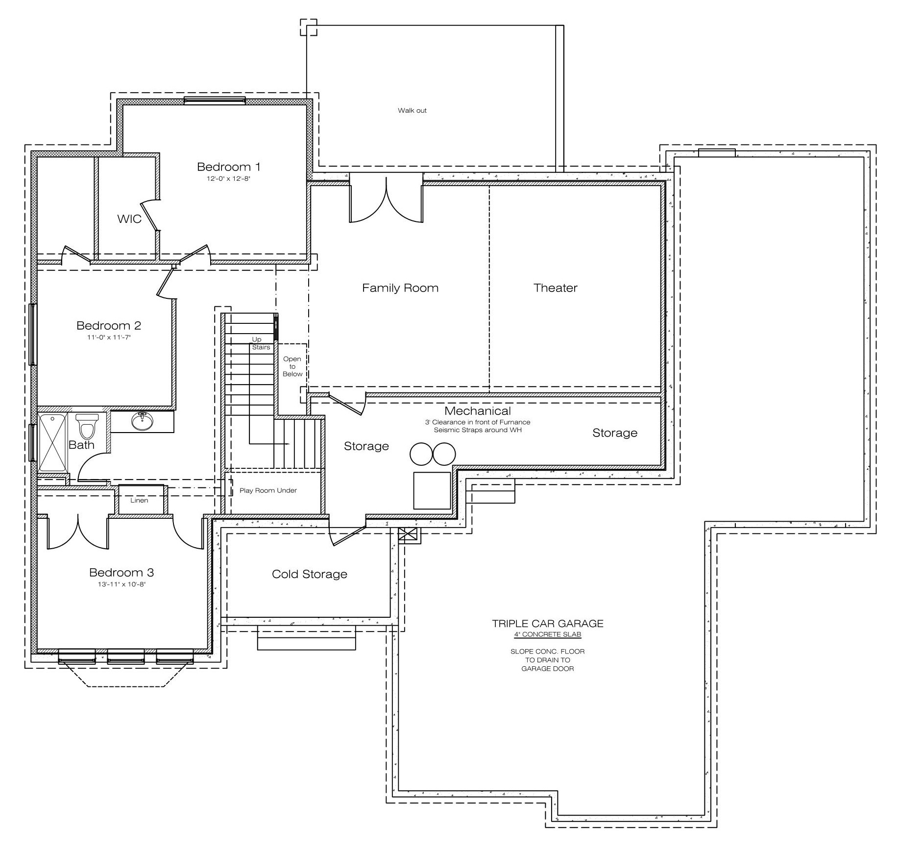 Single Story House Plan with Basement – 1749 Square Feet on the Main Floor --- FABULOUS Plan includes Five (5) Bedrooms, Three (3) Bathrooms, and a Three (3) car garage. Find a Covered Front Porch, Pantry, Play Room under the Stairs, a Fireplace, and a Theater Room in the WALKOUT BASEMENT! Plan may be Designed to fit your needs - Call today!