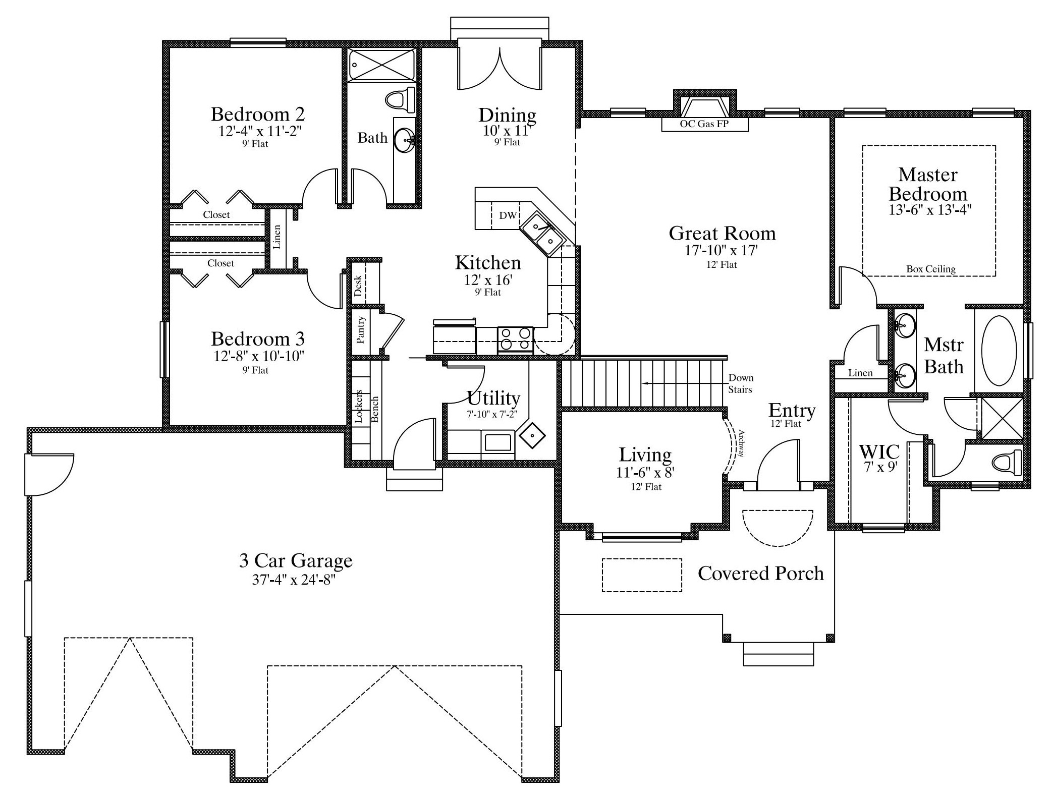 Single Story House Plan with Basement – 1813 Square Feet on Main Floor --- Lovely Single Story Family House Plan providing over 3600 Sq. Ft. when finished! The plan includes Six (6) Bedrooms, Three (3) Bathrooms, and a 3 Car Garage. Find a Secluded Suite, Mud Room, Living Room, Covered Porch, and Fireplace on the Main Floor. Basement includes an extra-large Storage Room, Three (3) Bedrooms, and a Family Room. Plan may be Designed to fit your needs - Call today!