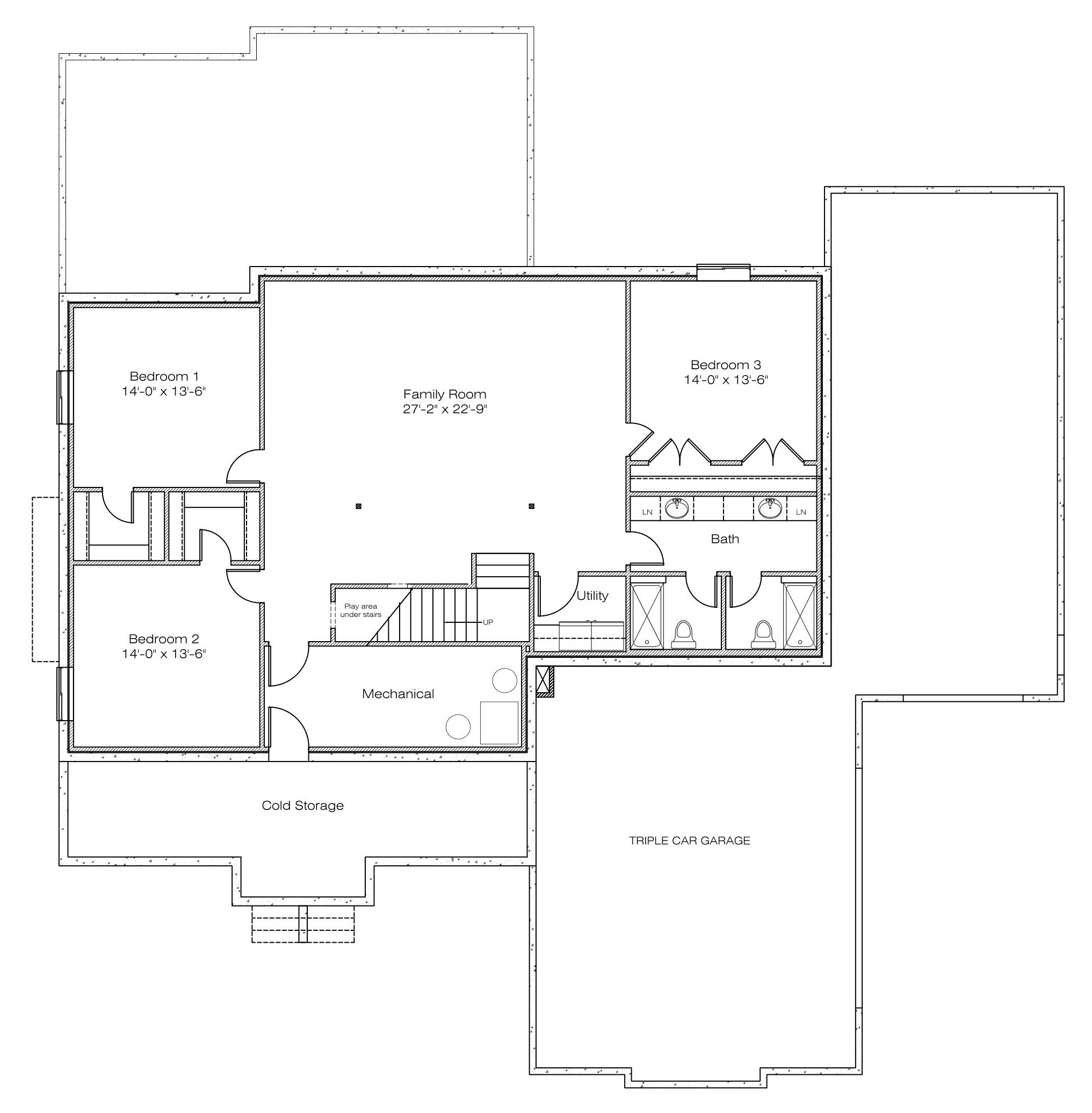 Single Story House Plan with Basement – 1987 Square Feet on Main Floor --- Amazing Single Story Family House Plan boasting nearly 4000 Sq. Ft. with finished. Find 4 Bedrooms and 3.5 Bathrooms, overall. Main Floor includes an Pantry, Dining Room, Mud Room, Secluded Main Floor Master Suite, and 3 Car Garage. Plan may be altered/designed to fit your needs - Call today!
