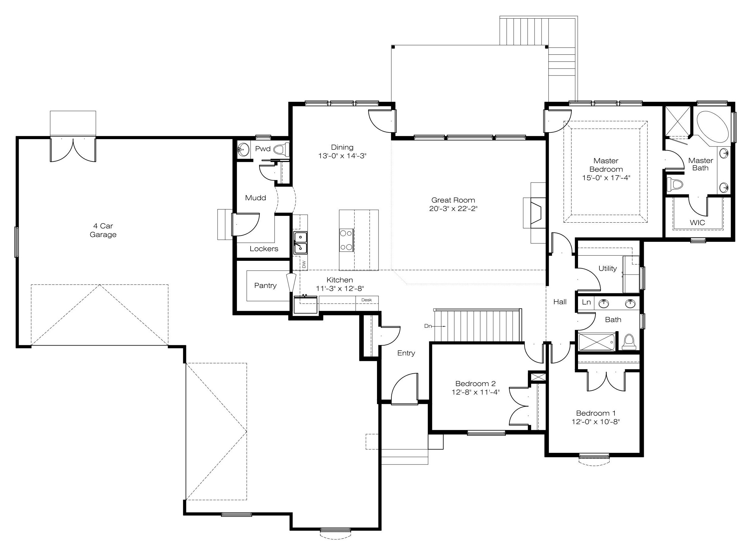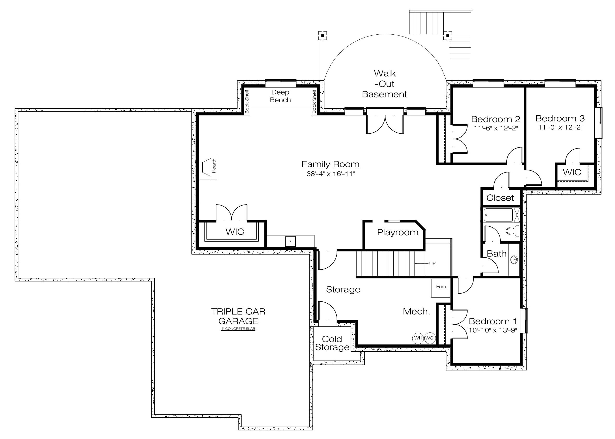 Single Story House Plan with Walkout Basement – 2188 Square Feet on Main Floor --- Popular Single Story Family House Plan boasting over 4300 Sq. Ft. with finished. Find 6 Bedrooms and 3.5 Bathrooms, overall. Main Floor includes a Fireplace, Pantry, Mud Room, Corner Tub, and a 4 car Garage. Enjoy a Walkout Basement as well. Plan may be Altered/Designed to fit your needs - Call today!