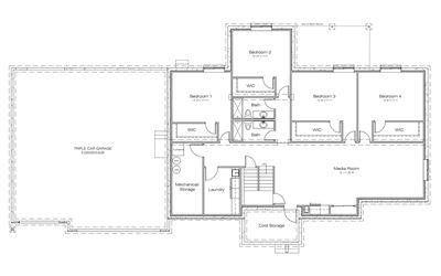 Single Story House Plan with Basement – 2320 Square Feet on Main Floor --- Fabulous Single Story Family House Plan boasting over 4600 Sq. Ft. with finished. Find Five (5) Bedrooms and Four (4) Bathrooms, overall. Main Floor includes a Secluded Master Suite, Mud Room, an Office, and a 3 Car Garage. Find a Theater Room, Cold Storage, and Four (4) Bedrooms in the Basement. Plan may be altered/designed to fit your needs - Call today!
