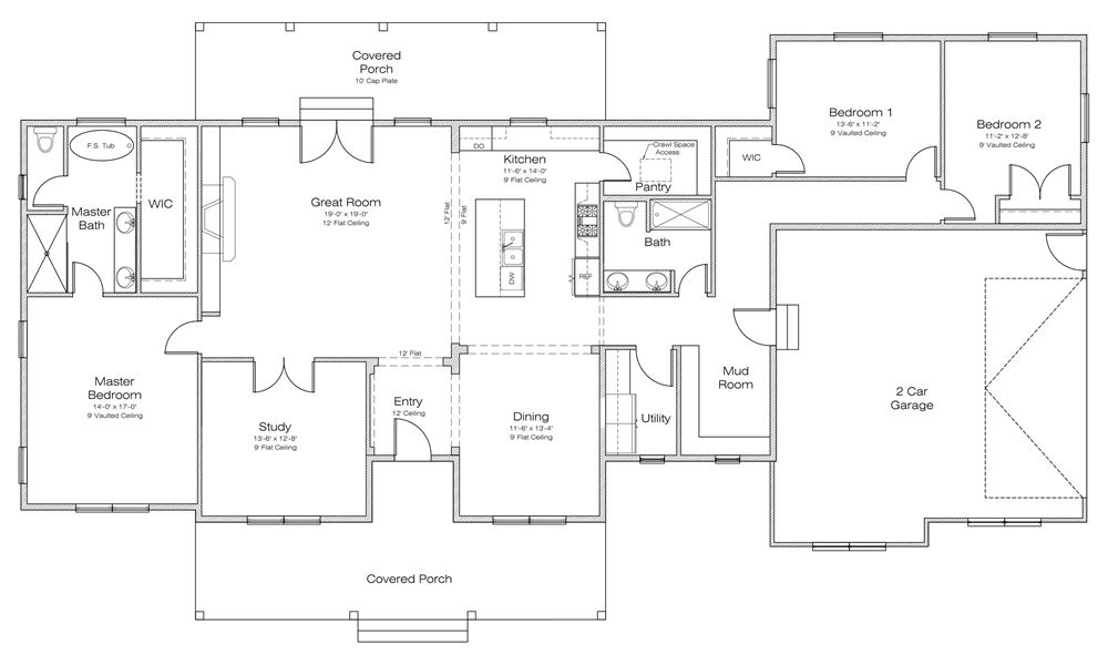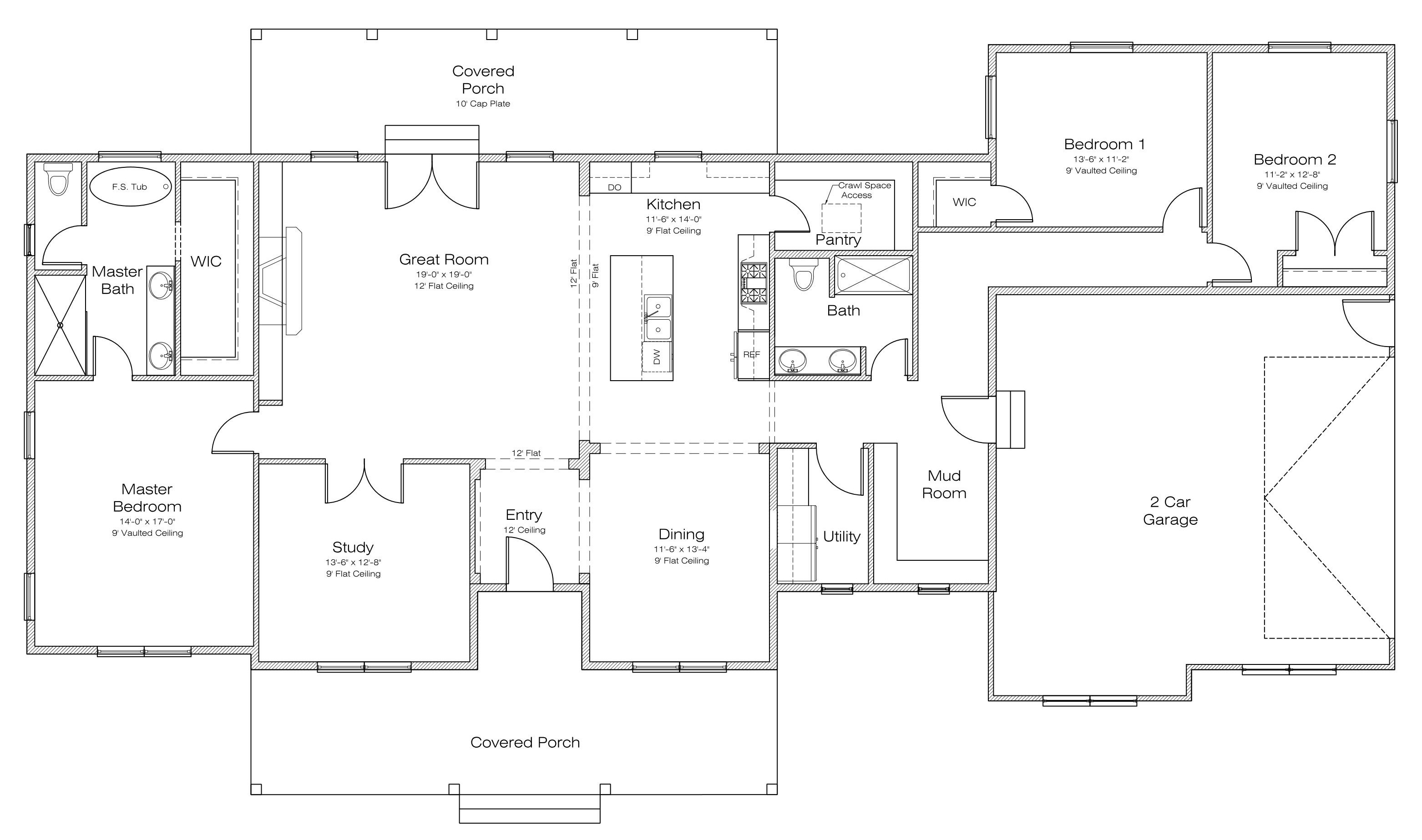 Single Story House Plan with Crawl Space – 2340 Square Feet on Main Floor --- Amazing Single Story Family House Plan boasting over 2300 Sq. Ft. with finished. Find 3 Bedrooms and 2 Bathrooms, overall. Main Floor includes an Pantry, Dining Room, Mud Room, Secluded Master, Covered Porch, Covered Deck, and 3 Car Garage. Basement may be added, contact Sundance Drafting and Design Office. Plan may be altered/designed to fit your needs.