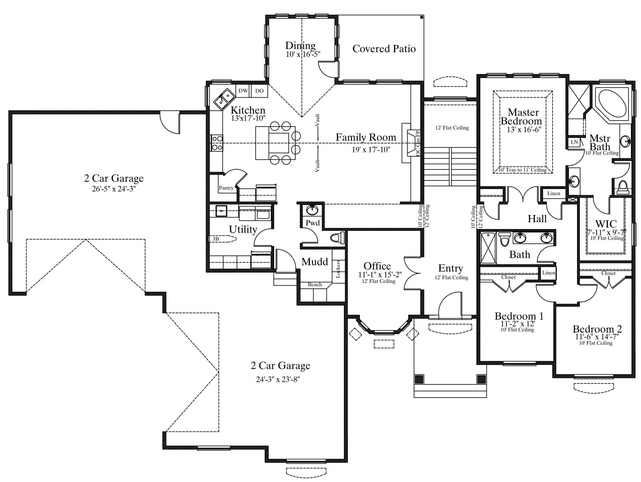 Single Story House Plan with Basement – 2541 Square Feet on Main Floor --- Spectacular Single Story Family House Plan featuring over 5000 Sq. Ft. when finished. Overall, enjoy Five (5) Bedrooms, 3.5 Bathrooms, and a 4 Car Garage. Find separate Mud Room and Utility Room, Covered Deck, Office, and Fireplace on the Main Floor. Basement area includes Two (2) Bedrooms, Theater Room, large Family Room, and Cold Storage. Plan may be Altered/Designed to fit your needs - Call today!