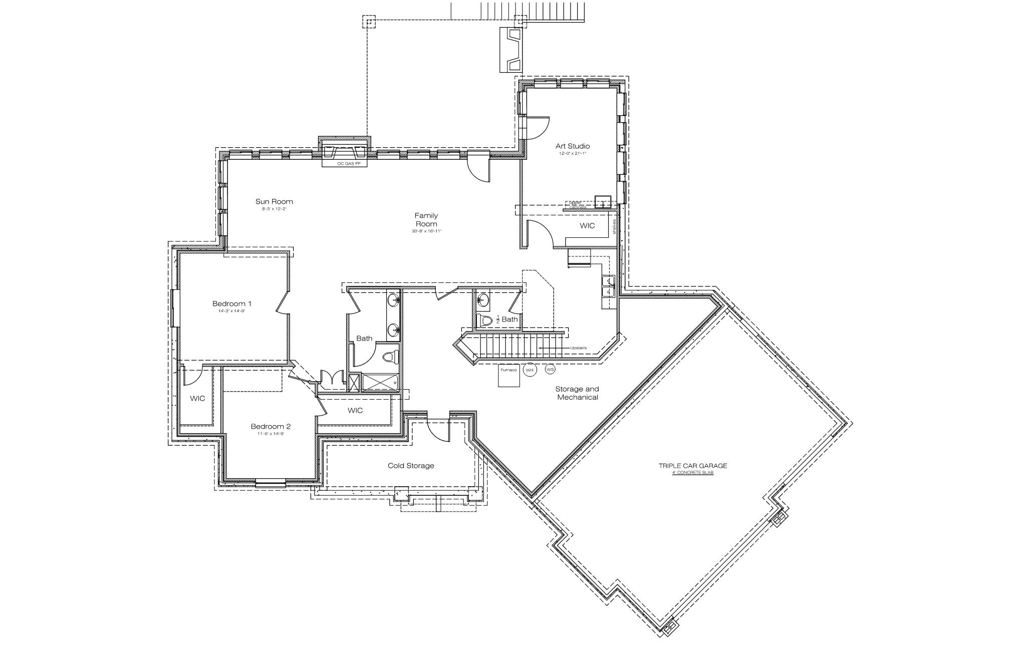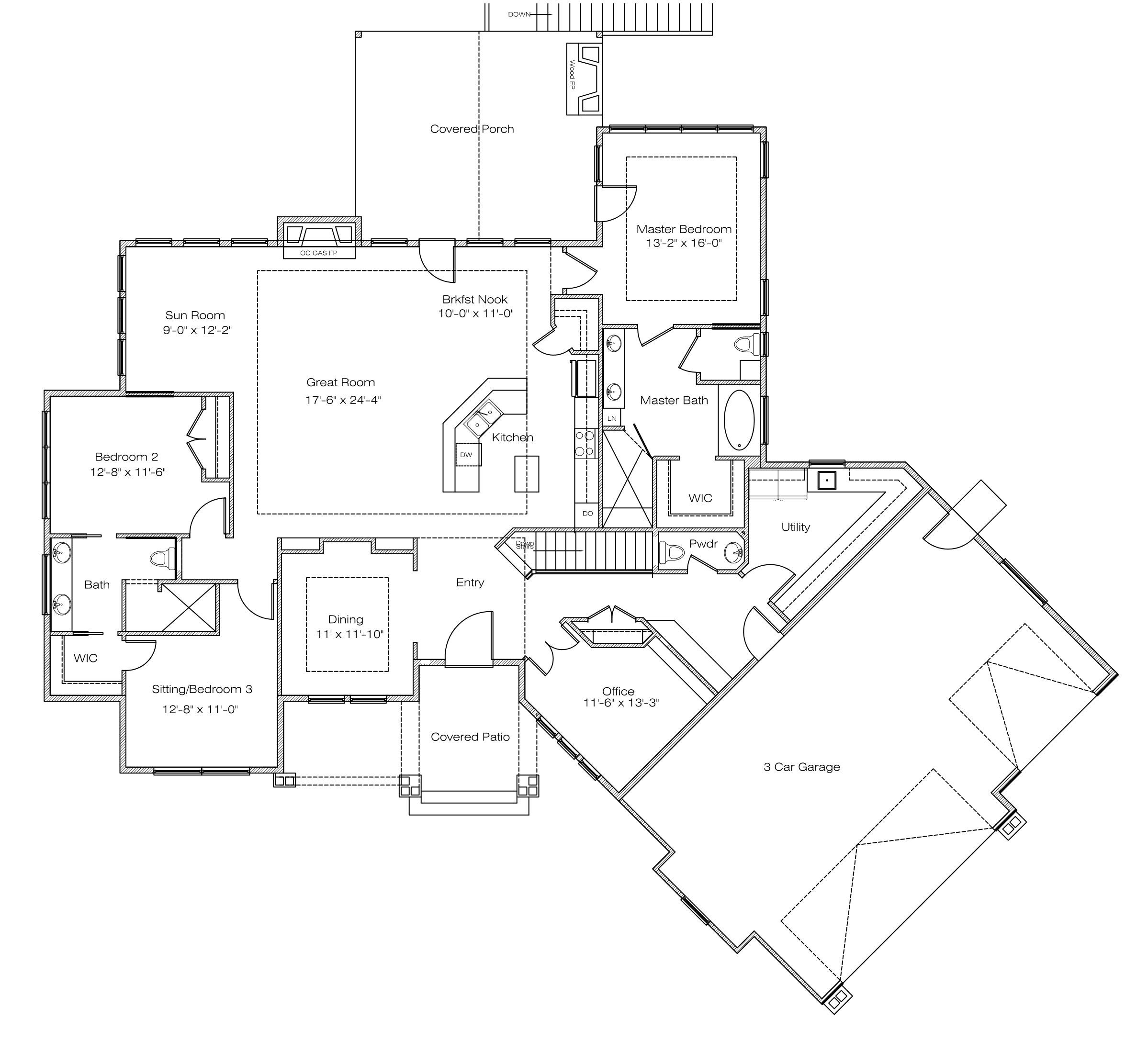 Single Story House Plan with Basement – 2576 Square Feet on Main Floor --- Sensational Single Story Family House Plan boasting over 5500 Sq. Ft. with finished. Find Five (5) Bedrooms and Four (4) Bathrooms, overall. Main Floor includes an Pantry, Covered Front Porch, Covered Back Porch, Mud Room, Secluded Master Suite, Sun Room, Art Room, Office, and 3 Car Garage. Plan may be Altered/Designed to fit your needs - Call today!