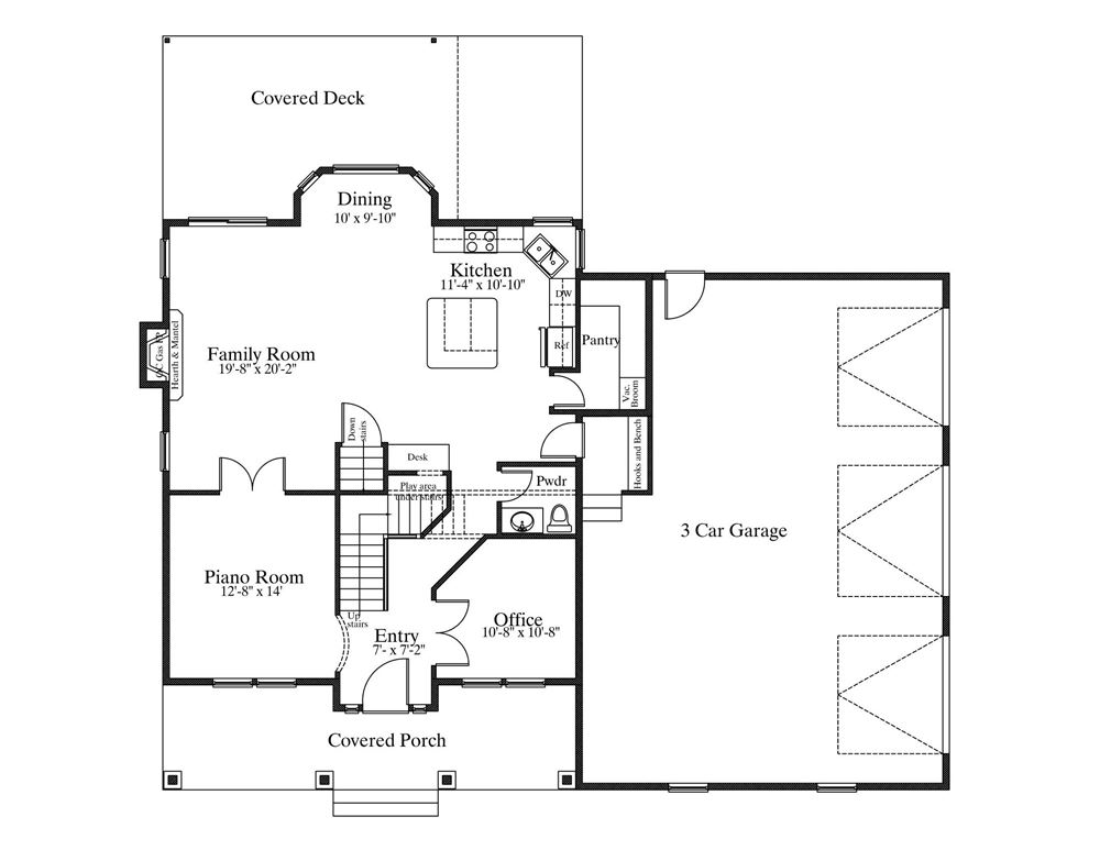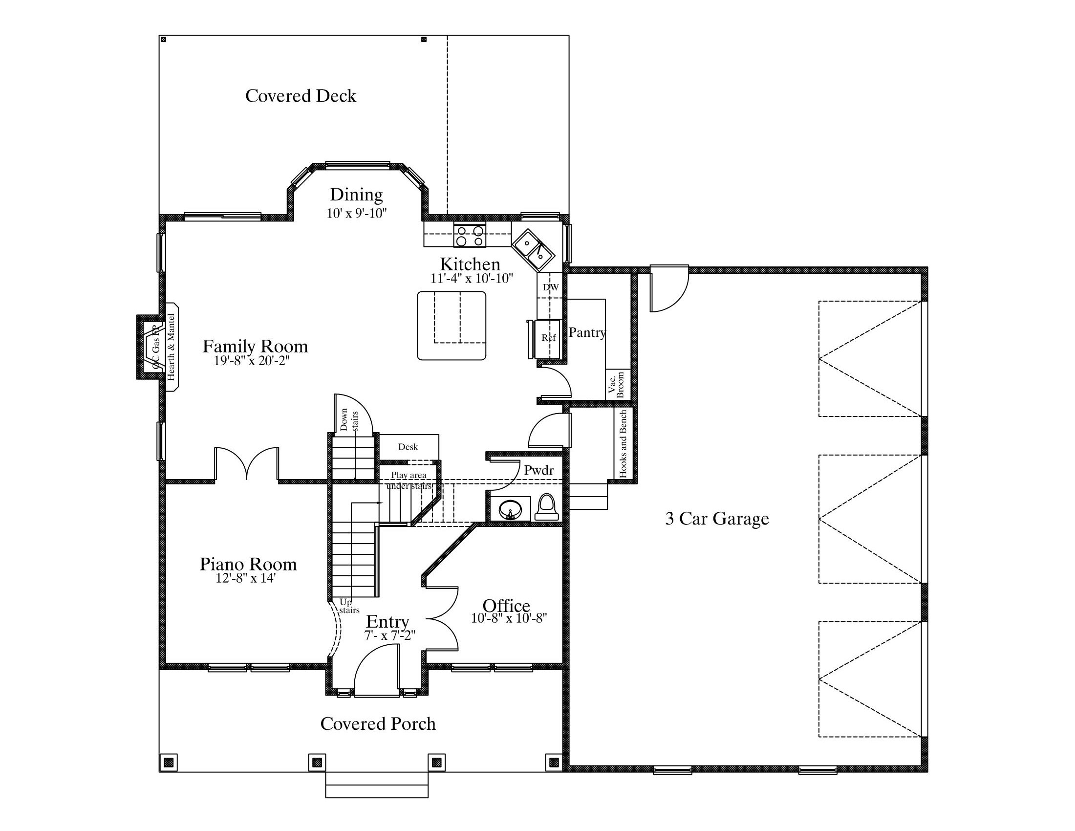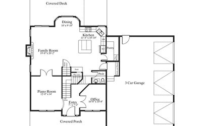 Two Story House Plan with Basement – 1250 Square Feet on Main Floor --- Wonderful Two Story Family House Plan with over 4100 Sq. Ft. when finished. Plan includes Five (5) Bedrooms, Five (5) Bathrooms, and a 3 Car Garage. Find a Piano Room, Covered Deck, Office, and Fireplace on the Main Floor. Second Floor includes the Master Suite, Two (2) Bedrooms, and a Bonus Room. Find a Family Room, Game Room, and a large Cold Storage Room in the Basement.