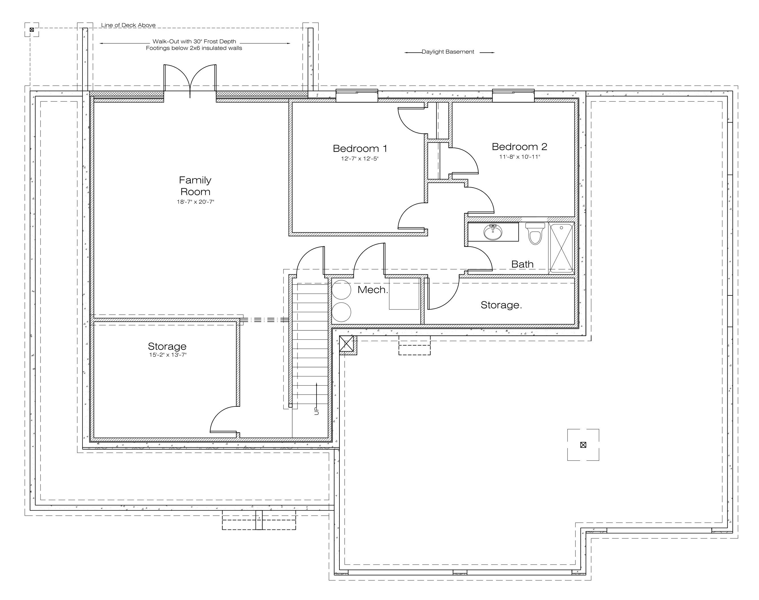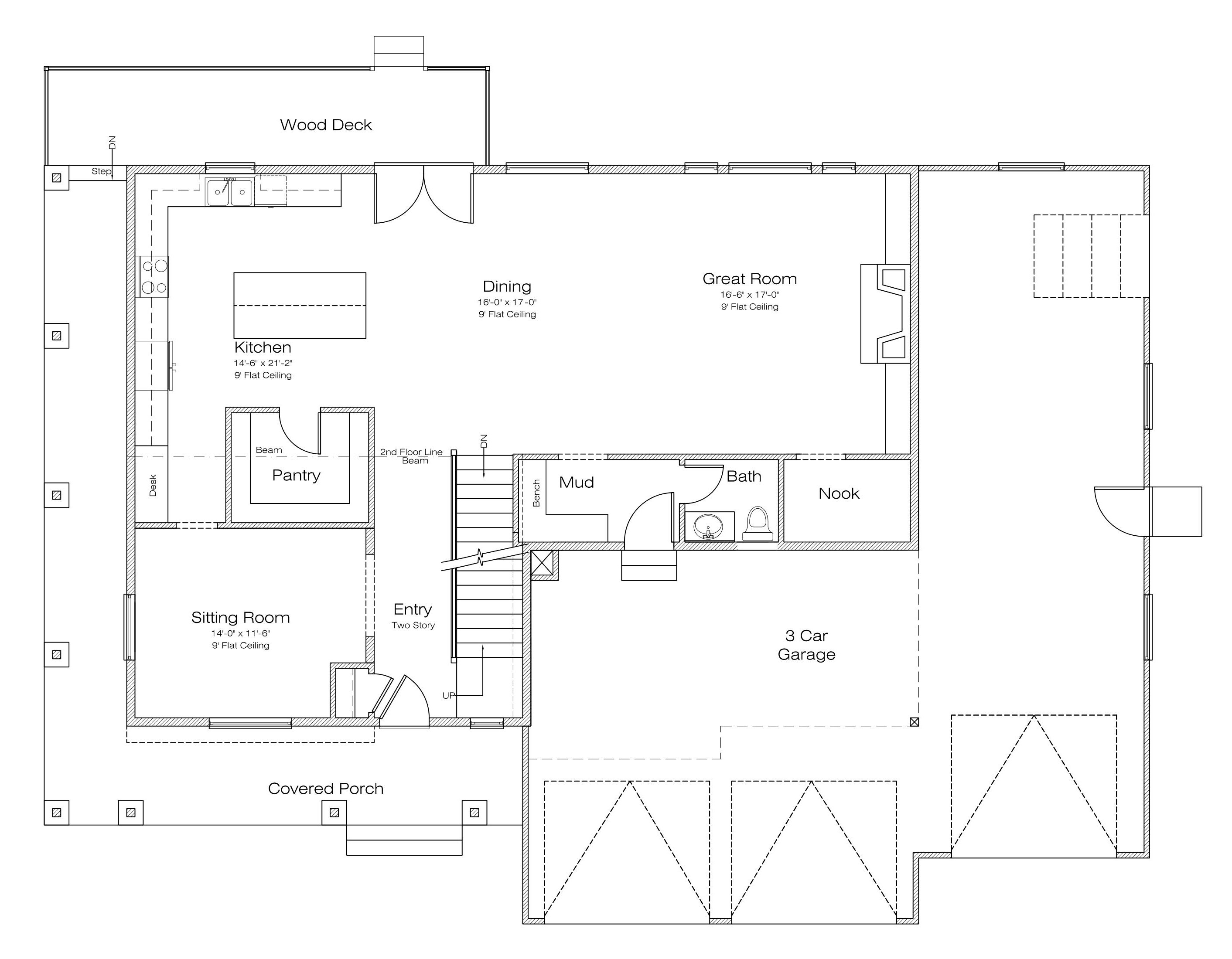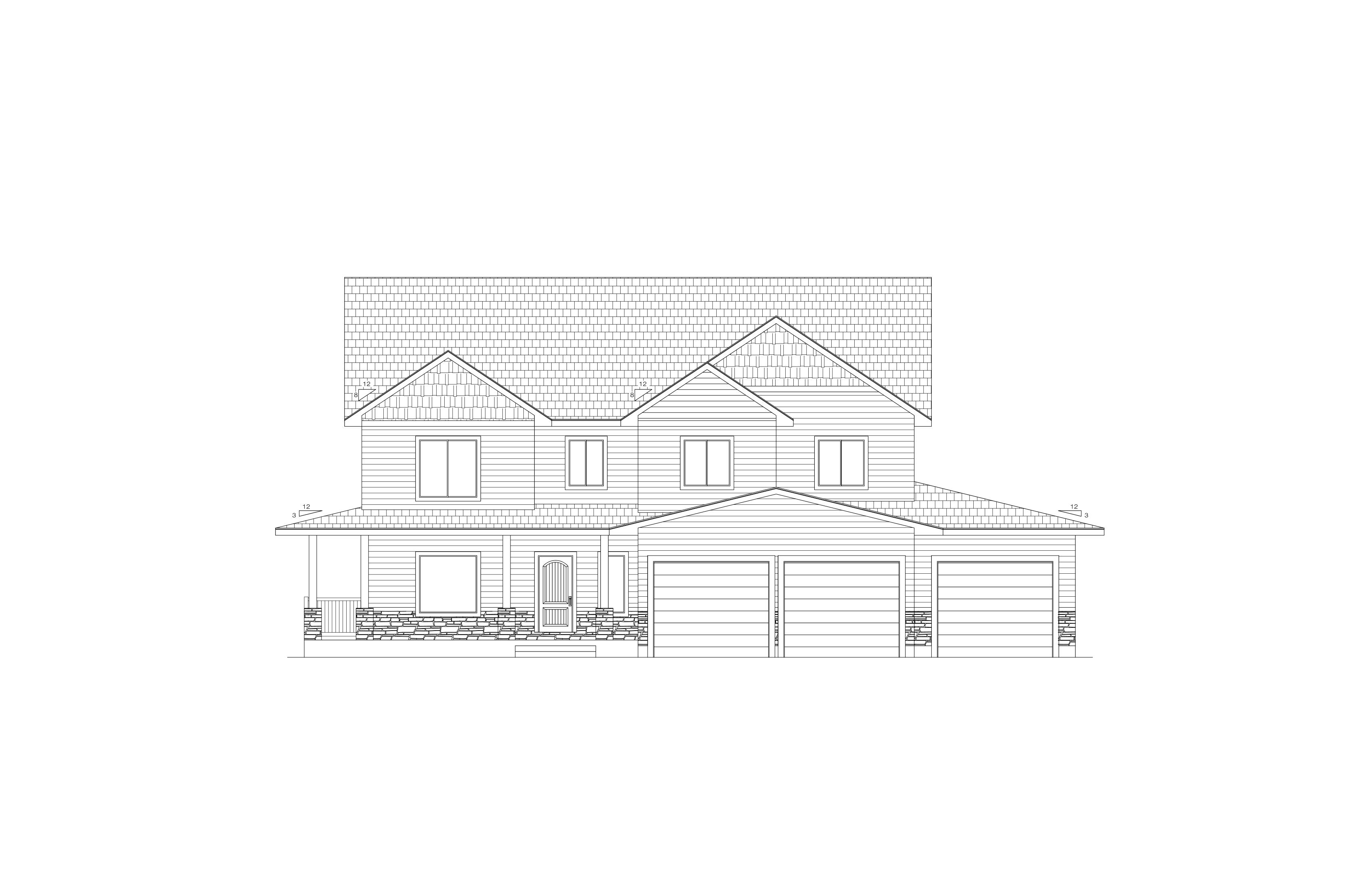 Two Story House Plan with WALK-OUT BASEMENT – 1381 Square Feet on Main Floor --- Amazing Two Story Family House Plan boasting over 4400 Sq. Ft. when completed. Find 6 Bedrooms and 4.5 Bathrooms, overall. Main Floor includes an Wood Deck, Sitting Room, Mud Room, Pantry, and 3 Car Garage. Basement includes large Family Room and 2 Storage Rooms. Plan may be Altered/Designed to fit your needs - Call today!