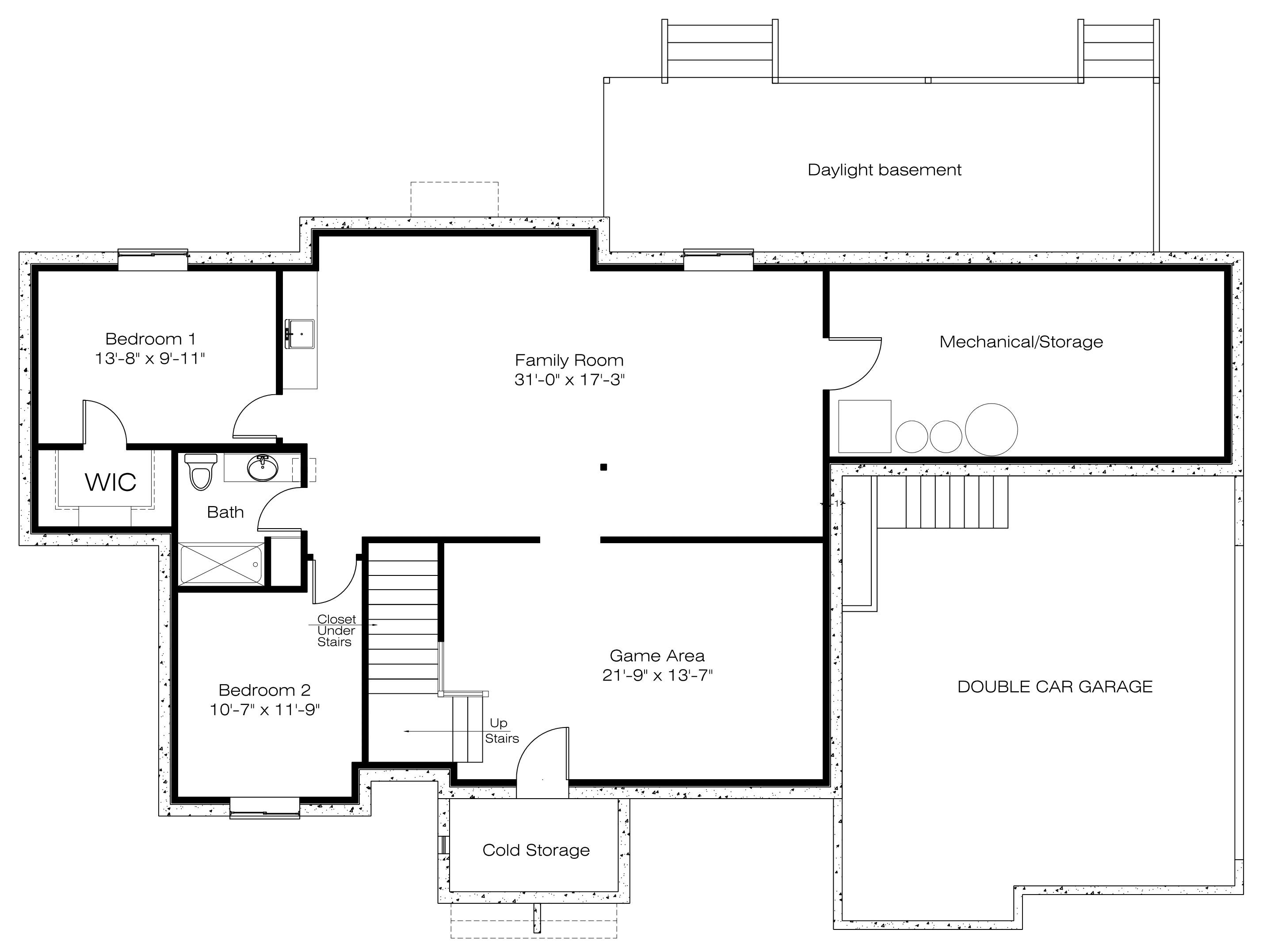 Two Story House Plan with Daylight Basement – 1721 Square Feet on Main Floor --- Fabulous Two Story Family House Plan with a Crawl Space with 1721 Sq. Ft. with finished. Find 5 Bedrooms and 4.5 Bathrooms, overall. Main Floor includes a Secluded Master Suite, Office and Breakfast Nook. Enjoy a Daylight Basement downstairs. Plan may be Designed to fit your needs - Call today!
