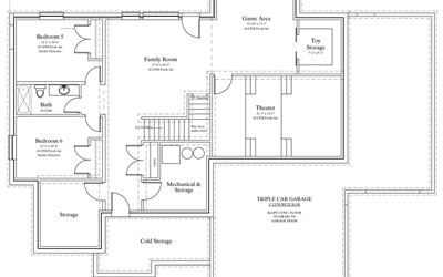 Two Story House Plan with Basement – 4995 Total Square feet --- STUNNING House Plan with 3 Stories!! This plan is PACKED with features --- Overall this plan boasts 7 Bedrooms, 3.5 Baths, and a 3 Car Garage. You will LOVE the Walk-In Pantry, Secluded Master Bedroom (only Bedroom on Main Floor), and Covered Porch on the Main Floor. The SECOND FLOOR has Four (4) Bedrooms. Enjoy a Theater Room and Cold Storage in the Basement. Plan may be Altered/Designed to fit your needs - Call today!