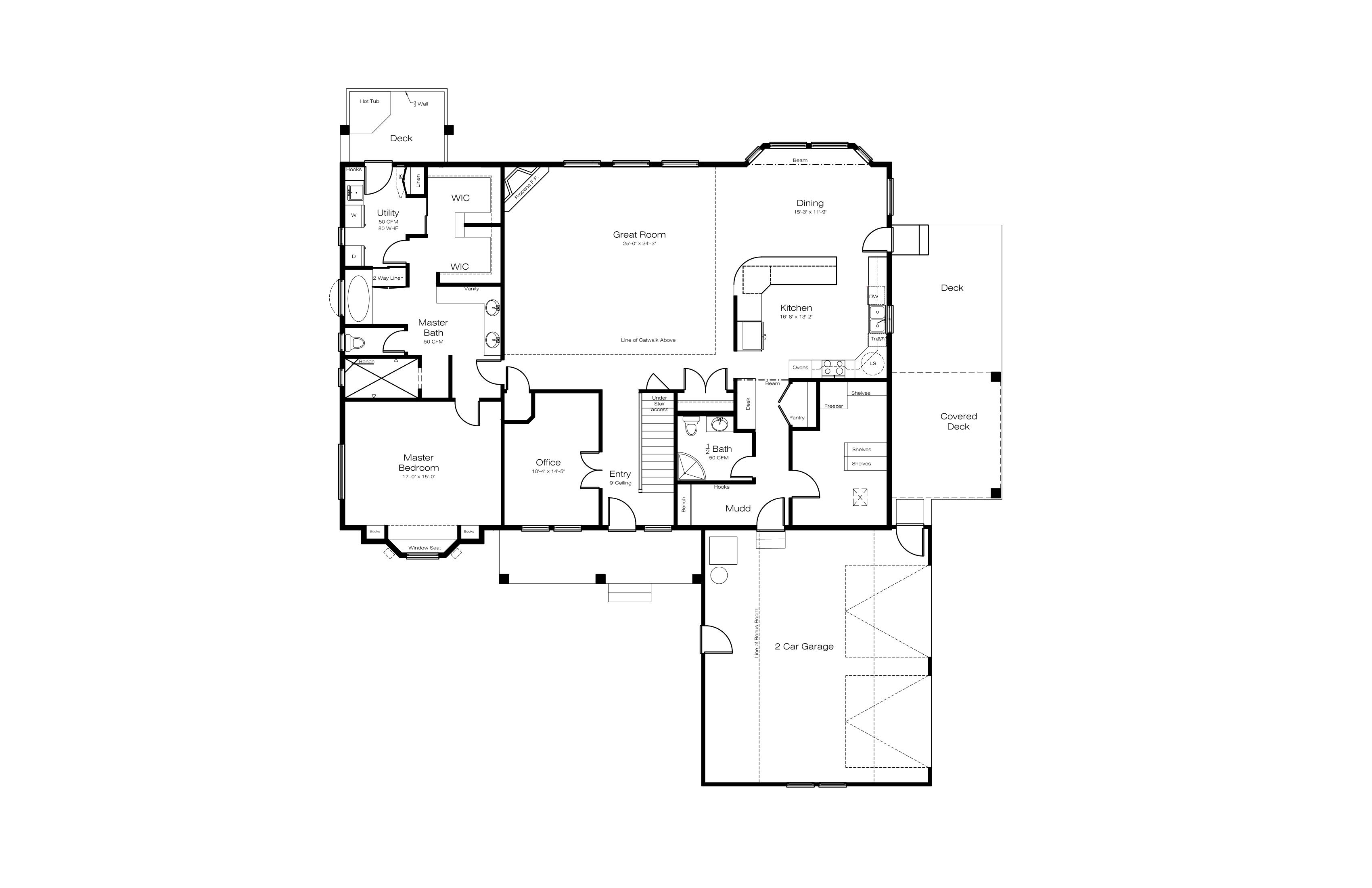 Single Story House Plan with Crawl Space – 2453 Square Feet on Main Floor --- Fabulous Single Story Family House Plan with Crawl Space boasting nearly 3400 Sq. Ft. with finished. Find 4 Bedrooms and 2.5 Bathrooms, overall. Main Floor includes a Covered Front Porch, Secluded Master Suite, Mud Room, Office/Den, and 2 Car Garage. Find 2 more Bedrooms, 1 Bathroom, and Living Area in the Bonus Room. Plan may be Altered/Designed to fit your needs - Call today!