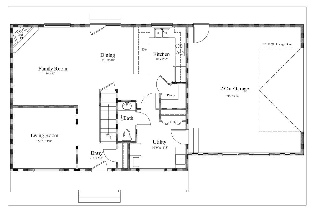 Two Story House Plan with Basement — 2853 Total Square Feet on Main Floor --- Beautiful and Simple House Plan coming in over 2800 Square Feet when complete. Find and average of 954 Square Feet on each floor. Plan includes Five (5) Bedrooms, Four (4) Bathrooms, and a 2 Car Garage. Also, enjoy a Mud Room, Living Room, and Gas Fireplace.