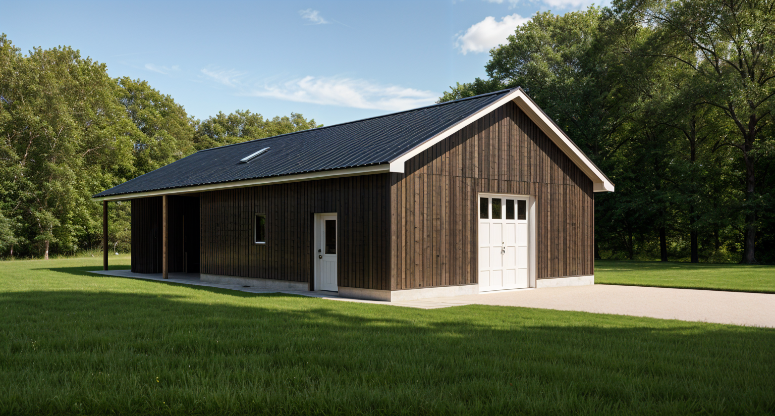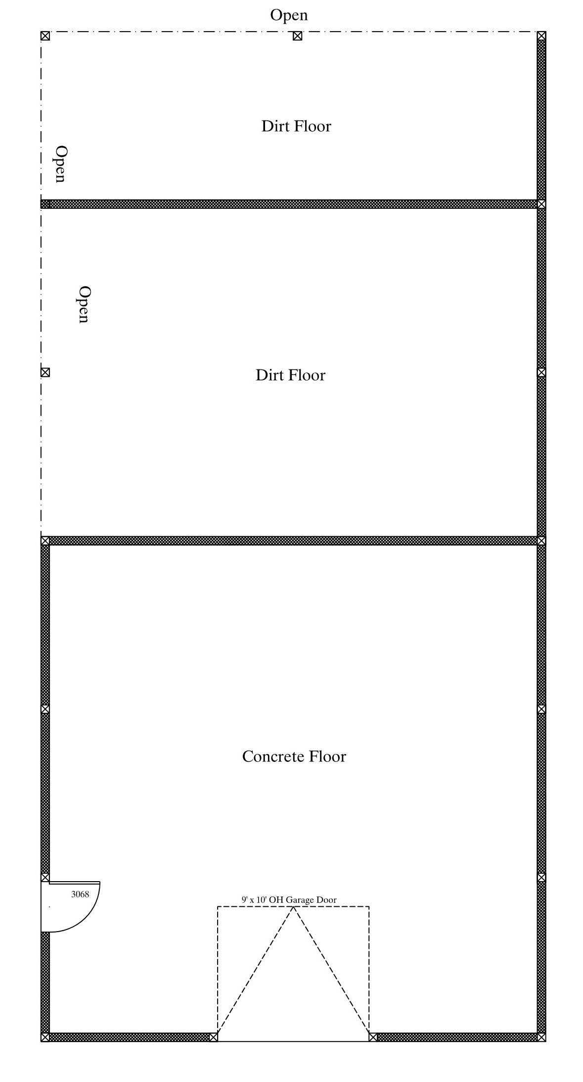 Single Story Barn Plan – 1800 Square Feet with Concrete and Dirt Floors --- Great Barn Plan boasting over 1800 Sq. Ft. with finished. Both Concrete and Dirt Floor(s) available. Open rear area for animals is available. Barn may be altered/designed to fit your needs - Call today!