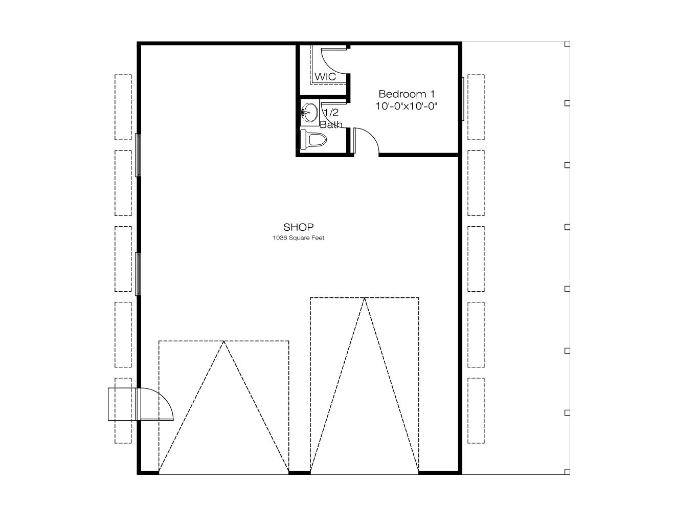 Two Story Shop Plan with Bonus Room – 1200 Square Feet on Main Floor --- Great Shop Plan! Shop is 30’ x 40’ and is 1200 Sq. Ft. on the Main and a 703 Sq. Ft. Bonus Room is 703 Overall Sq. Ft. Note: 12’ Wall Height. 10 x 10 overhead doors. Plan may be Altered/Designed to fit your needs - Call today!